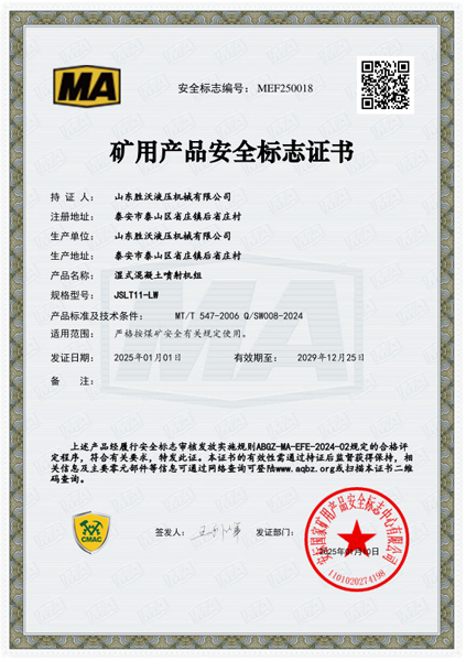 热烈祝贺山东胜沃取得10~14立方挖斗上料湿式混凝土喷射机组安标证书
